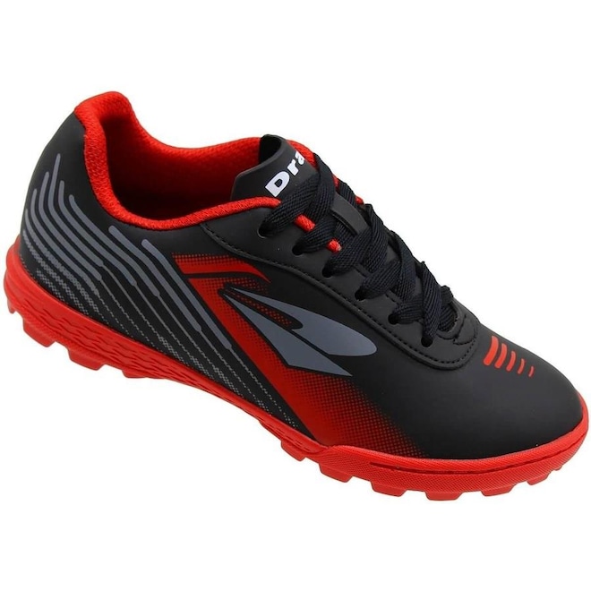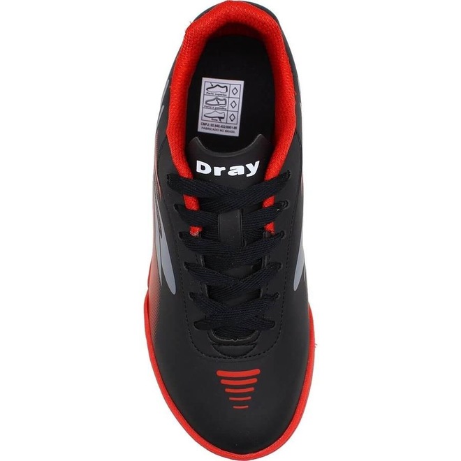 Chuteira Society Infantil Dray Spedy Cano Baixo Masculina A marca Dray lança a mais recente Chuteira Society Infantil Dray Spedy Cano Baixo Masculina, recomendada para partidas e práticas em campos de grama artificial. Ela possui uma parte superior feita de PVC laminado com detalhes em relevo que aprimoram o controle e o toque da bola. O revestimento interno de nylon, espuma e poliéster oferece conforto ideal para os pés, assim como a palmilha feita de EVA e fibra, que é removível para facilitar a limpeza. O solado, feito de borracha, possui micro travas fixas, que garantem agilidade nos movimentos e uma excelente aderência. Informações:Ideal para: futebol society.Cabedal: em material sintético laminado. Fechamento: em cadarço para melhor ajuste aos pés.Solado: em borracha com mini cravos. Peso: 215g aproximadamente - número 35. O peso varia de acordo com a numeração. Garantia do Fabricante: 90 dias contra defeito de fabricação.ref: M12AQW
