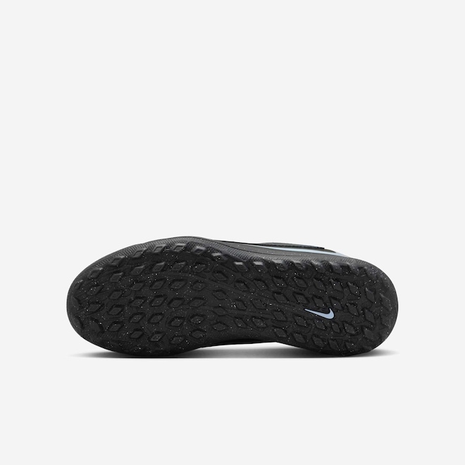 A parte de cima conta com um material maleável que se ajusta ao formato do pé, garantindo maior controle e proximidade com a bola.