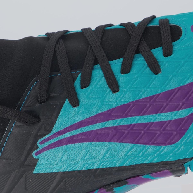 Tecnologias HiperFlex: Canaletas posicionadas estrategicamente para auxílio na flexão e movimentação dos pés. Locker: "Meia" que permite ajuste mais anatômico e maior conforto. Composição cabedal (parte superior): Confeccionado em material sintético Palmilha: PU conformada e removível; facilita na higienização Solado: TPU com micro travas fixas Forro: Material têxtil acolchoado Cor predominante: Azul Indicado para: Society Lingueta: Integrada Origem: Nacional Ajuste: Cadarço Idade: Juvenil Peso aproximado: 490g o par nº35