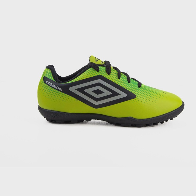 Com um design autêntico e ousado, a Chuteira Umbro Cannon Society é indicado para jogadores iniciantes que se destacam dentro de campo. O grafismo reticulado com efeito degradê traz personalidade e cores vivas no melhor estilo Umbro. O cabedal é construído em material sintético laminado com aplicação de serigrafia em 3 cores e forro em tecido de poliéster. Possui Diamante Umbro na lateral estilizado com a assinatura do modelo, atacador convencional e palmilha interna em EVA forrado. O solado de society composto por blenda de TPU e PVC. Não perca tempo e garanta já a sua!