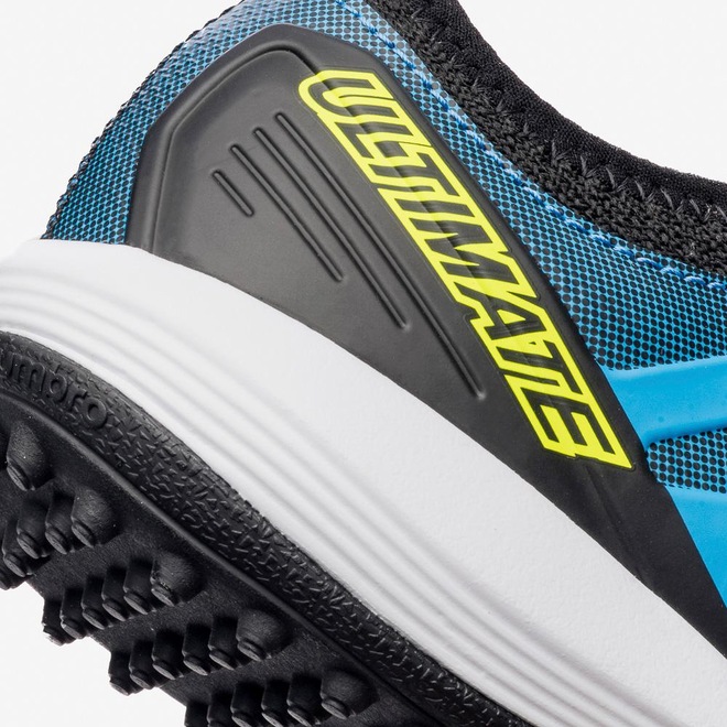 A Chuteira Society Umbro Ultimate Jr combina estilo e desempenho para os jovens jogadores, seguindo o design do modelo adulto. O cabedal assimétrico em material laminado emborrachado liso garante toque macio, enquanto as janelas em alta frequência adicionam textura. Possui calce tipo meia em tecido com elastano, grafismo camuflado geométrico e palmilha em EVA forrado. O solado de TPU monocolor com travas cônicas e entressola em EVA proporciona tração e conforto.