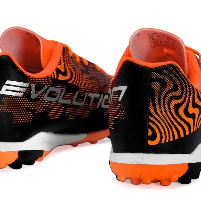 - Detalhamento: Fechamento em cadarço convencional, solado com travas para o campo society, lingueta com o logo em evidência, logo Joma na lateral externa e escrita Evolution na lateral interna;