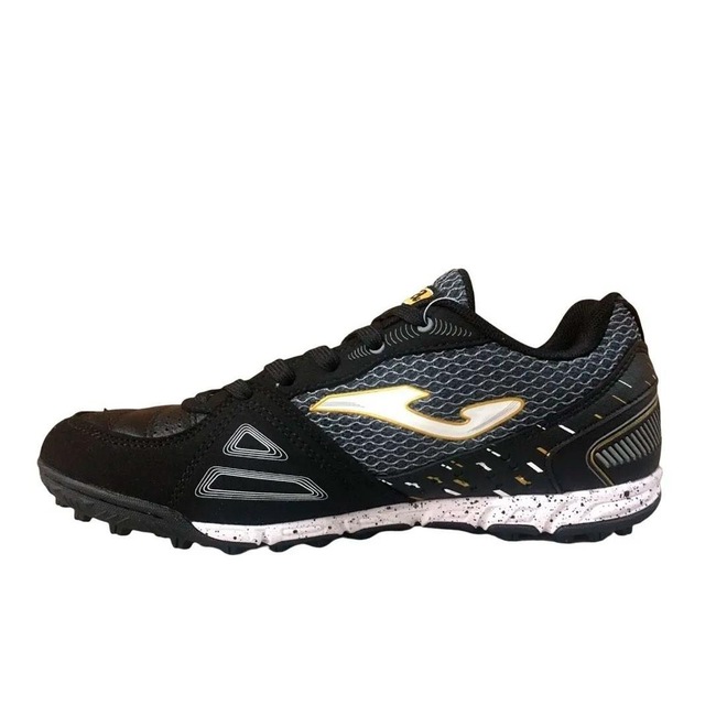 A Chuteira Society Joma Mundial auxilia sua performance nos gramados sintéticos, com travas fixas apropriadas para esse tipo de campo.