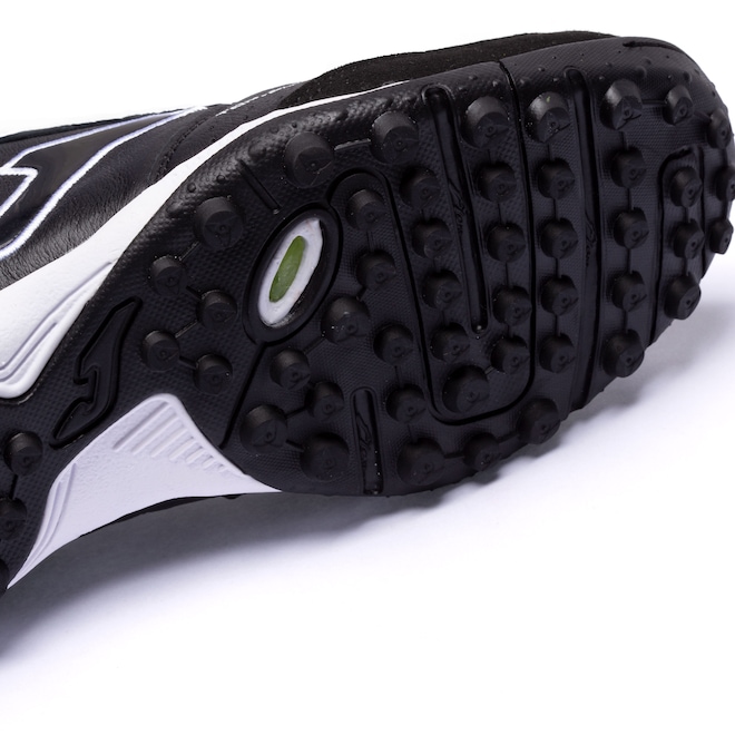 A chuteira Joma conta com forro têxtil e reforço acolchoado no calcanhar garantindo maior proteção.