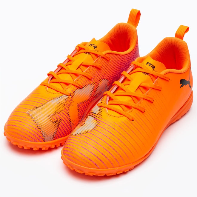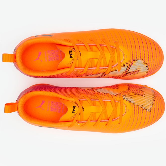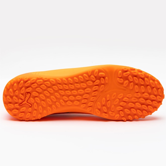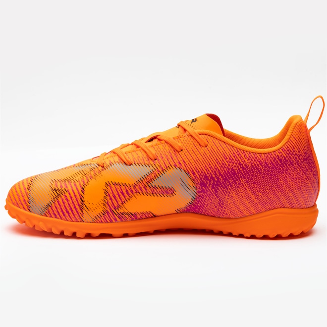 O cabedal leve com detalhes texturizados melhora o controle da bola, enquanto a estrutura de suporte em relevo aumenta a estabilidade.