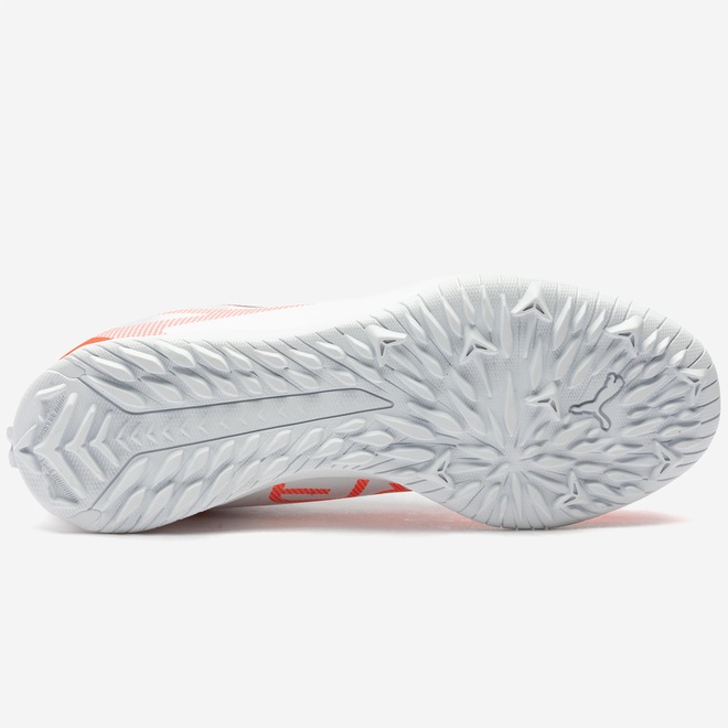 O solado com travas baixas oferece tração ideal em gramados sintéticos e superfícies duras, garantindo estabilidade em cada jogada.