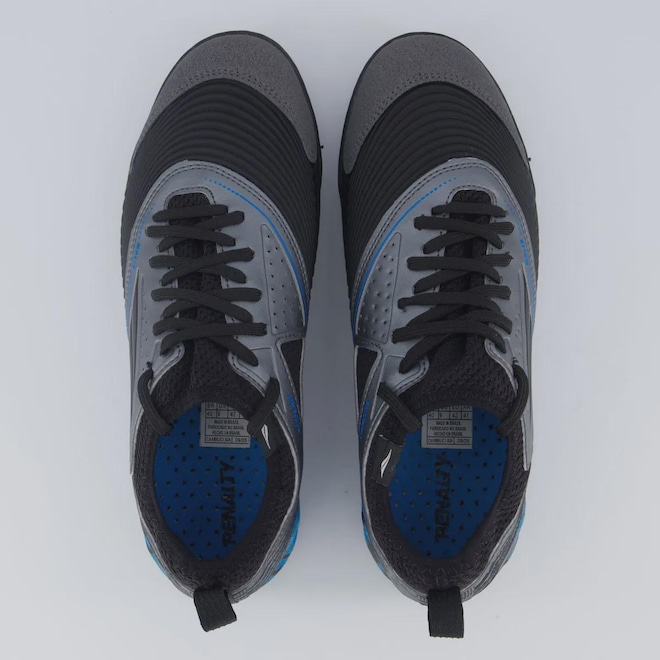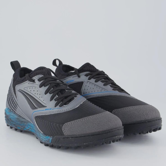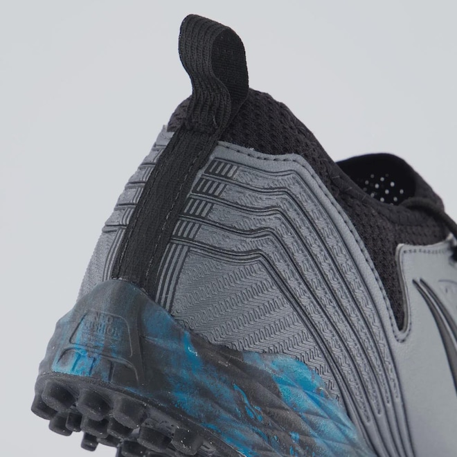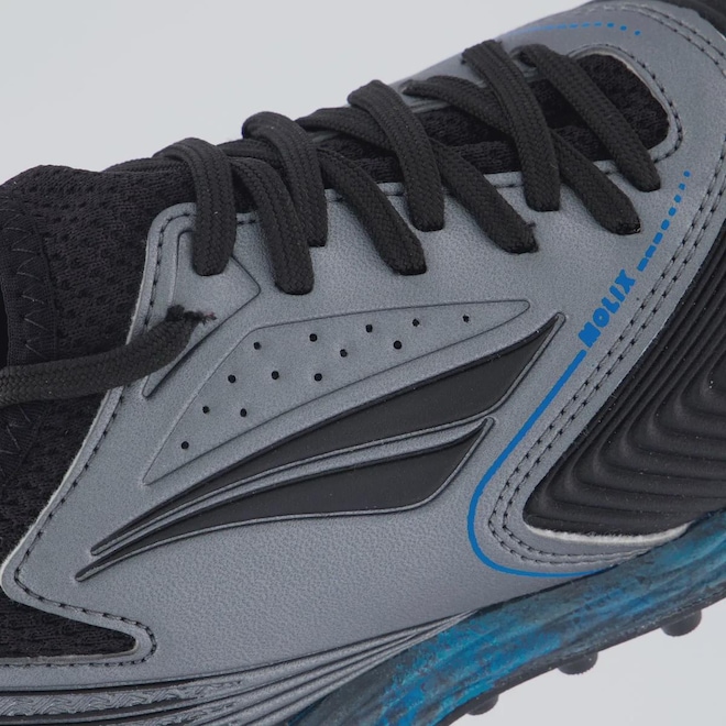 Tecnologias Borracha Regenerada : Resistência. A borracha regenerada é um material Reciclado, o que ajuda a reduzir o impacto ambiental ao reutilizar resíduos de borracha. Neo Cushion : Entressola em eva que reduz o impacto durante a movimentação do atleta, ajudando a previnir lesões, desgaste nos joelhos e demais articulações. Micropower : Leveza, durabilidade, controle de bola e facilidade de manutenção, proporcionando aos jogadores uma vantagem competitiva em esportes como futebol. Eva Plana : Conforto. Palmilha em eva para maior amortecimento. Ecoknit : Sustentabilidade e respirabilidade. Tecido sustentável construído a partir de garrafas Pet com tramas abertas que proporcionam alta respirabilidade, gerando troca térmica ideal para jogos de futebol em alta intensidade. Molix : Domínio e Flexibilidade. Tecnologia exclusiva aplicada na região de maior contato com a bola e flexão dos pés, proporcionando assim um maior domínio de bola e movimentação. Hiperflex : Canaletas posicionadas estratégicamente para auxílio na flexão e movimentação dos pés. Aero 2 : Respirabilidade. Solado com 2 aberturas para potencializar a ventilação na região plantar. Composto por uma manta impermeabilizante impedindo a entrada de água. Composição cabedal (parte superior): Confeccionado em têxtil com sobreposição em sintético Palmilha: Em EVA Plana para maior amortecimento; facilita a higienização Solado: Borracha com micro travas fixas, colado Entressola: EVA macio e confortável Forro: Material têxtil respirável Cor predominante: Cinza Lingueta: Integrada Indicado para: Society Origem: Nacional Ajuste: Cadarço Peso aproximado: 680g o par nº40