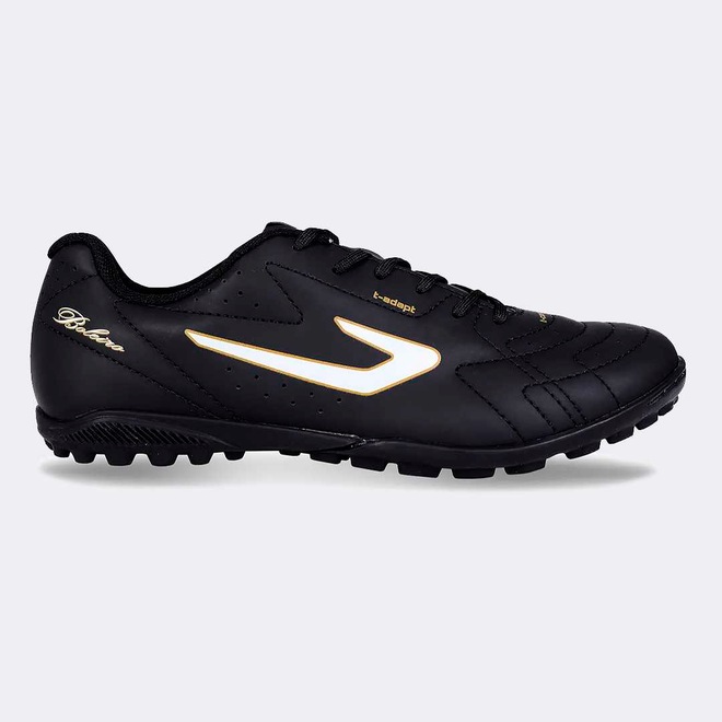 Seu cabedal em material sintético proporciona resistência e leveza, enquanto o ajuste firme com cadarço garante maior estabilidade durante as jogadas. O solado com travas baixas emborrachadas foi projetado para oferecer excelente tração e aderência, permitindo movimentos rápidos e seguros no society.