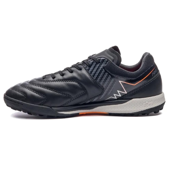 A Chuteira Society Adamant Master Class Pro é indicada para quadras de society. Apresenta cabedal assimétrico confeccionado em couro Napa Premier na parte frontal e no talão, com dupla costura de reforço nas linhas de flexão. Possui lingueta com aplique fusionado, pontos vazados no solado de borracha e palmilha interna em EVA conformado. O solado de society HG, com sistema de travas mistas, é composto por entressola BUMP texturizada com soleta em borracha antiderrapante.