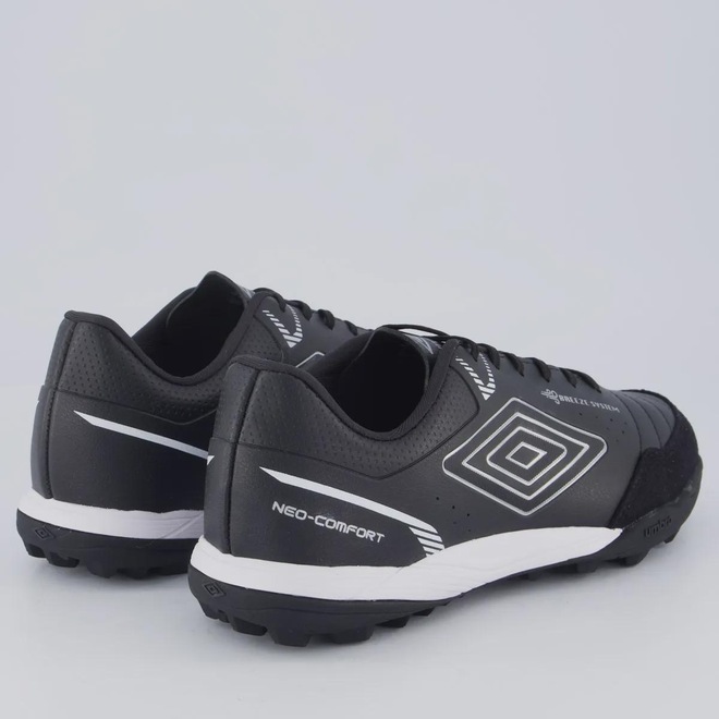 Tecnologias Breeze System: Tecnologia que melhora a ventilação do calçado, promovendo maior circulação de ar para manter os pés frescos e secos durante o uso. 360 Zone: Sistema que oferece suporte e estabilidade em toda a volta do pé, garantindo melhor ajuste, controle e proteção em movimentos durante a prática esportiva. Composição cabedal (parte superior): Confeccionado em material sintético Solado: Borracha com micro travas com costura na frente Palmilha: Em EVA e removível; facilita na higienização Forro: Material têxtil com acolchoamento no calcanhar Lingueta: Fina e flexível Cor predominante: Preta Indicado para: Society Gênero: Masculino Origem: Nacional Ajuste: Cadarço Peso Aproximado: 590g par nº 40