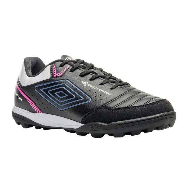 A Chuteira Society Umbro X-Comfort é ideal para quem busca conforto, amortecimento e durabilidade nos gramados sintéticos. O modelo conta com o sistema de respirabilidade BREEZE SYSTEM, que traz pontos perfurados estrategicamente posicionados no cabedal para garantir ventilação eficiente durante o jogo. Sua palmilha X-Comfort em EVA, combinada ao solado que também incorpora EVA em toda a extensão, assegura amortecimento macio e estabilidade a cada passada, oferecendo suporte ideal para partidas intensas.