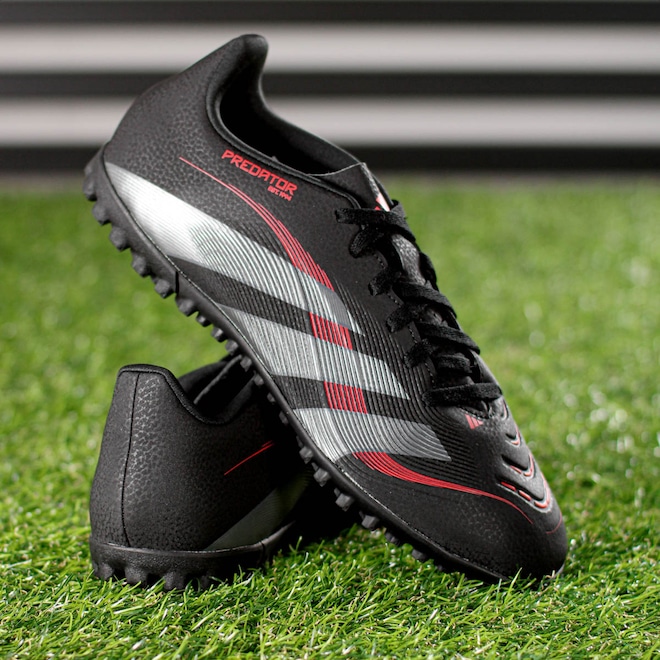 Controle absoluto e conforto em cada jogada no society! Chuteira Adidas Society Predator Club TF Preto e Vermelho - Masculino Ficha Técnica: Marca: Adidas Cor: Preto e Vermelho Cabedal: Sintético com forro têxtil macio Gênero: Masculino Palmilha: Têxtil Sola: Borracha sulcada para campos society Fechamento: Cadarço Amortecimento: Convencional Estabilidade: Alta Solado: Borracha sulcado - TF para tração ideal Lingueta: Perfurada para mais respirabilidade Entressola: Convencional Indicação: Campo de grama artificial (society) Detalhes: Logotipo Adidas na lingueta e laterais; formato padrão; construção com 20% de materiais reciclados Prepare-se para dominar as quadras com a Chuteira Adidas Predator Club TF. Feita para quem busca precisão e segurança nos gramados artificiais! Porque investir: Ela combina cabedal sintético resistente com forro interno macio, oferecendo conforto desde o primeiro toque. Seu solado sulcado garante tração nos momentos decisivos, e ainda conta com materiais reciclados, reforçando seu compromisso com a sustentabilidade. Conteúdo da embalagem: 1 par de Chuteira Adidas Society Predator Club TF Preto e Vermelho - Masculino