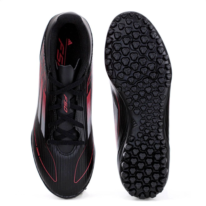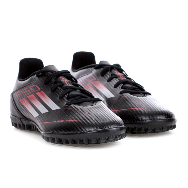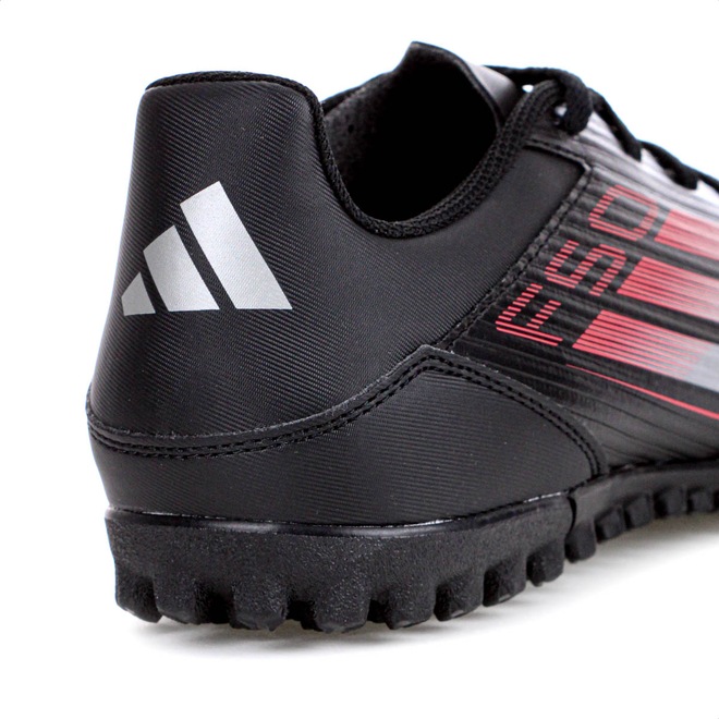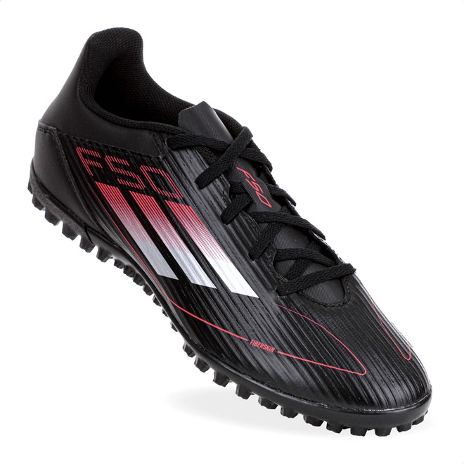 Desafie os limites da velocidade com leveza e precisão em cada passo! Chuteira Adidas Society F50 Club TF Preto Vermelho e Prata - Masculino Ficha Técnica: Marca: Adidas Cor: Preto, vermelho e prata Cabedal: Material sintético Fiberskin com suporte leve Gênero: Masculino Palmilha: EVA forrada e removível Sola: Borracha com travas para campo de grama artificial Lingueta: Perfurada para respirabilidade Fechamento: Cadarço Amortecimento: EVA leve Estabilidade: Ideal para superfícies artificiais Tecnologias: Cabedal em Fiberskin que proporciona suporte e leveza; design inspirado na linha F50, voltado para velocidade Entressola: EVA moldado para conforto e amortecimento responsivo Indicação: Campo de grama artificial de society Detalhes: Contém pelo menos 20% de materiais reciclados Aposte na leveza e no desempenho da Adidas F50 Club TF e transforme sua agilidade em vantagem dentro de campo. Porque investir: O cabedal em Fiberskin garante suporte e conforto, enquanto o solado com sulcos proporciona excelente tração em campos de society. Com design arrojado e sustentável, essa chuteira foi feita para quem joga com intensidade e responsabilidade. Conteúdo da embalagem: 1 par de Chuteira Adidas Society F50 Club TF Preto Vermelho e Prata - Masculino