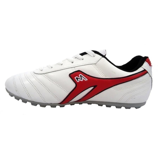 A marca Mathaus é conhecida por fabricar chuteiras em couro, que proporcionam maior conforto e durabilidade. Um exemplo disso é a chuteira Azurra. Fabricada em couro, com solado em borracha, a chuteira se ajusta muito bem ao pé. Calcanhar com estabilizador em Tubox, o que garante mais estabilidade e segurança nos movimentos. Fechamento por cadarço convencional. Solado blaqueado, costurado em 100% de sua área. Forro em Jakar e Nylon reforçado, o que oferece maior conforto.