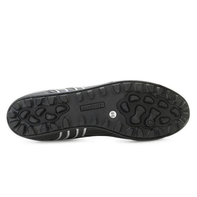 Nome: Chuteira Society Mathaus MT24-10002. Gênero: Masculino. Indicado Para: Futebol-Dia a Dia-Treino e Competição. Estilo da Peça: Lisa. Ocasião: Society. Material Externo: Couro, costuras reforçadas. Material Interno: Têxtil. Fechamento: Cadarço. Palmilha: EVA Forrada e removível. Solado: Borracha com travas fixas para práticas em futebol Society. Peso do Produto: 1045 g (o peso varia de acordo com a numeração). Garantia do Fabricante: Contra defeito de fabricação. Origem: Nacional. Código Produto: 01230720. Marca: Mathaus.ref: M13GFS