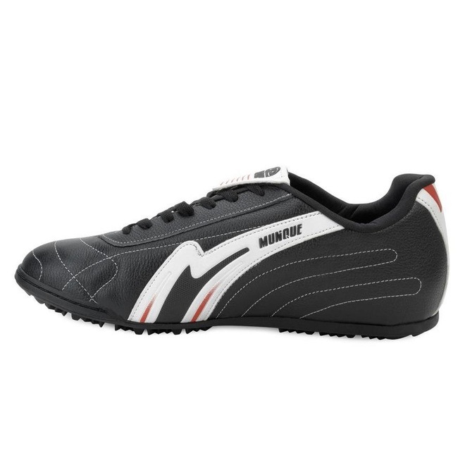 Nome: Chuteira Society Munique MN23-712. Gênero: Masculino. Indicado Para: Futebol-Dia a Dia-Treino e competição. Ocasião: Society. Material Externo: Em couro com costuras reforçadas. Material Interno: Têxtil. Fechamento: Cadarço. Palmilha: EVA forrada e removível. Solado: Em borracha específica para futebol society. Peso do Produto: 1.078 kg (o peso varia de acordo com a numeração). Garantia do Fabricante: Contra defeito de fabricação. Origem: Nacional. Código Produto: 01230685. Marca: Munique.ref: M105J5