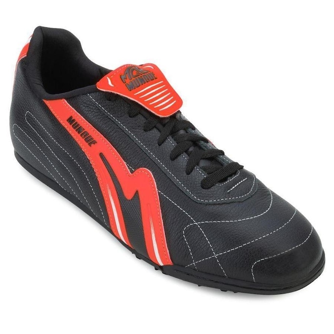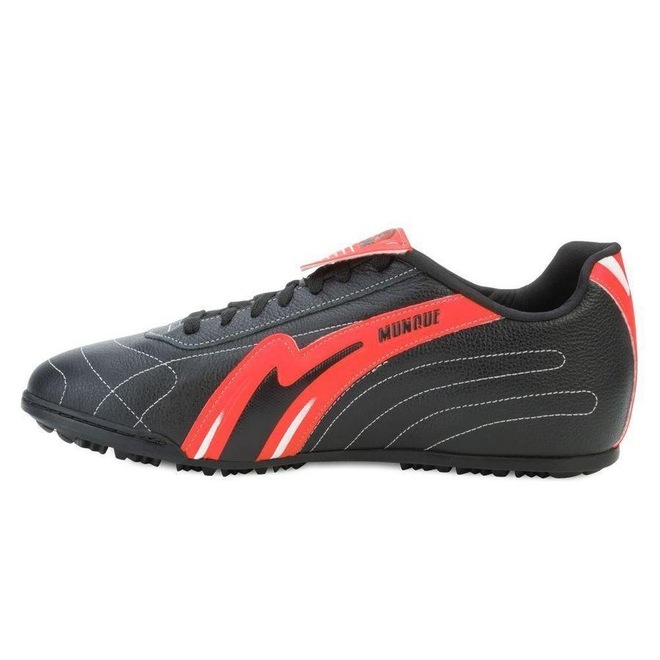 Nome: Chuteira Society Munique MN23-712. Gênero: Masculino. Indicado Para: Futebol-Dia a Dia-Treino e competição. Ocasião: Society. Material Externo: Em couro com costuras reforçadas. Material Interno: Têxtil. Fechamento: Cadarço. Palmilha: EVA forrada e removível. Solado: Em borracha específica para futebol society. Peso do Produto: 1.078 kg (o peso varia de acordo com a numeração). Garantia do Fabricante: Contra defeito de fabricação. Origem: Nacional. Código Produto: 01230689. Marca: Munique.ref: M105J7