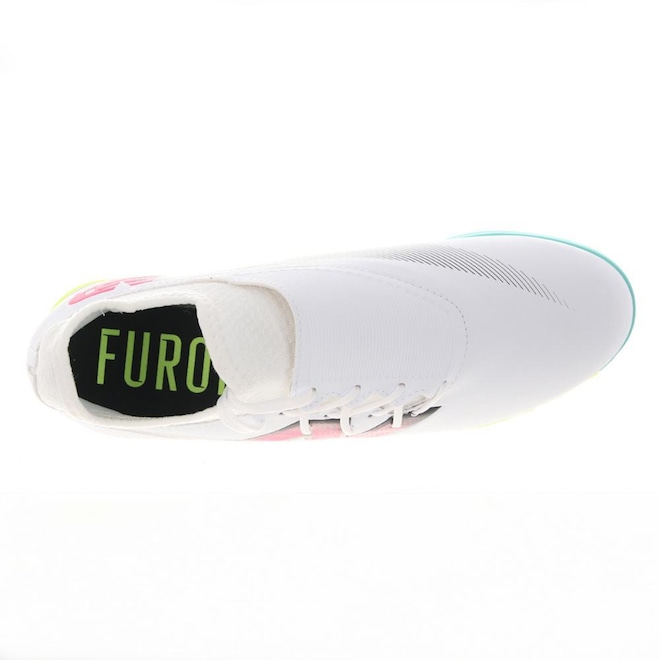 - Sobre o produto - Chuteira Society New Balance Furon Dispatch Tf V7+ - AdultoA Chuteira Society New Balance Furon Dispatch Tf V7 possui cabedal sintético leve e conta com sistema de amarração de cadarço deslocado para o lado que proporciona uma sensação de proximidade com a bola e ajuda a garantir chutes certeiros. O modelo tem design FURON endossado pelos grandes craques do futebol Society!- ref: M160V9