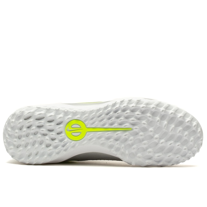 O solado de borracha especialmente projetado oferece tração excepcional em campos de grama sintética, permitindo movimentos ágeis e precisos.