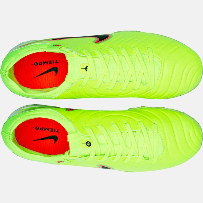 Design Mais Leve: Substituímos as cápsulas de espuma do modelo Tiempo 9. Isso cria uma aparência mais elegante e aproxima o seu pé da bola, sem sacrificar o controle que você precisa. Em vez de preenchimento, as linhas de toque são moldadas diretamente no calçado.