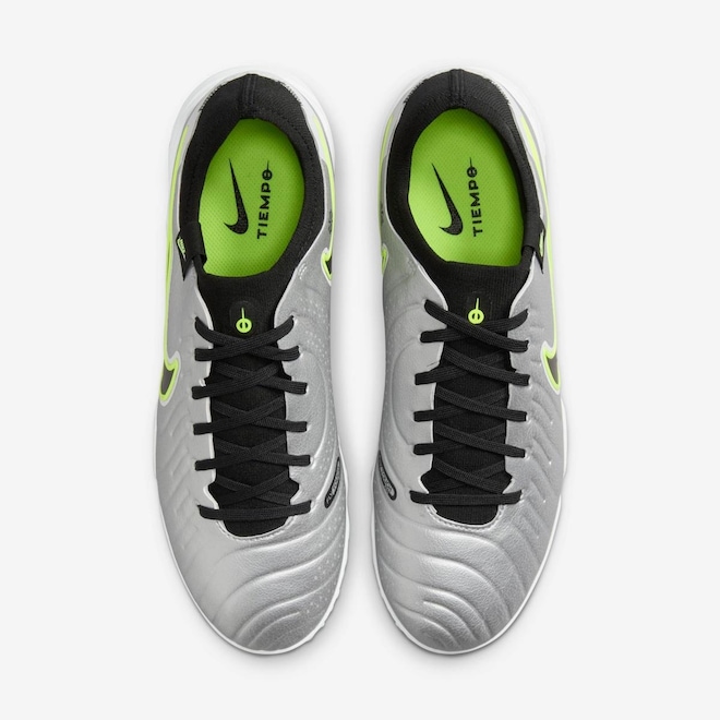 Design Mais Leve: Substituímos as cápsulas de espuma do modelo Tiempo 9. Isso cria uma aparência mais elegante e aproxima o seu pé da bola, sem sacrificar o controle que você precisa. Em vez de preenchimento, as linhas de toque são moldadas diretamente no calçado.
