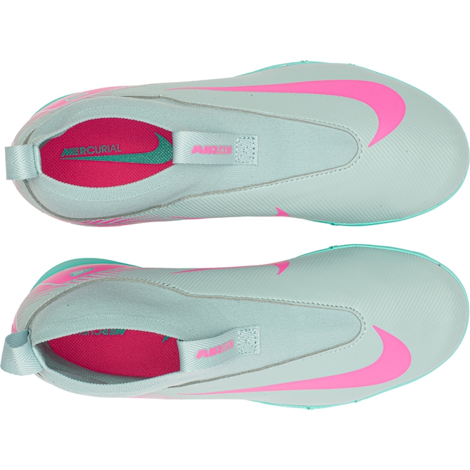 A Chuteira Society Nike Mercurial Zoom Superfly 10 Academy Júnior é a escolha perfeita para os jovens jogadores que buscam desempenho e velocidade em campo.