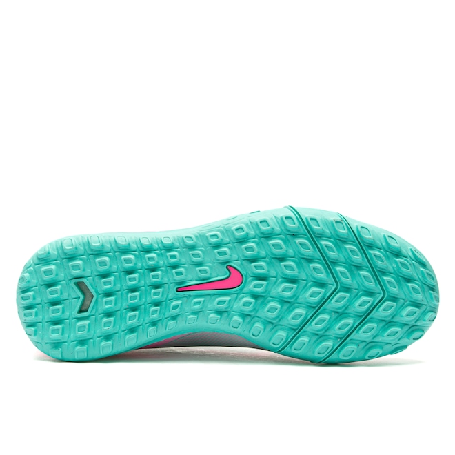 O cabedal com NikeSkin combina PU fino e malha para garantir leveza, ajuste preciso e uma sensação natural de contato com a bola, maximizando o controle.