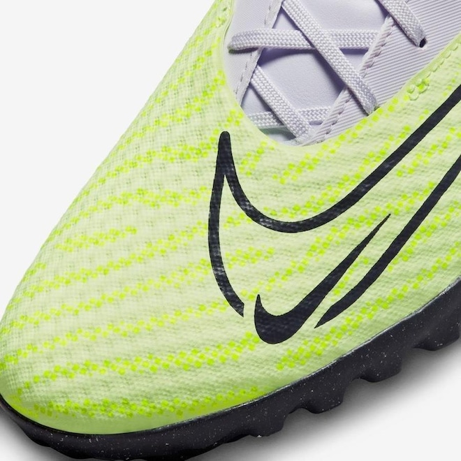 Dynamic Fit: Proporciona um encaixe preciso, como o de uma meia, garantindo mais suporte na região do tornozelo e do pé. Já o solado emborrachado com travas baixinhas é específico para uso em superfícies curtas e sintéticas.