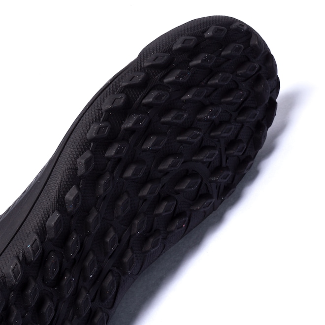 O cabedal (parte superior da chuteira) é em sintético moldado com textura para uma melhor sensação e controle no toque com reforço acolchoado no colar do calcanhar que ajuda a diminuir o desconforto do atrito de contato.