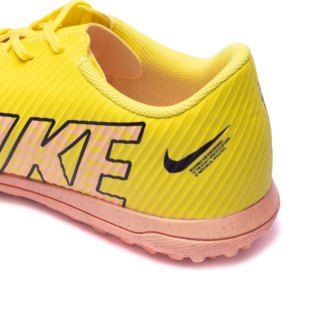 Já o solado emborrachado possui travas específicas para a modalidade society, ideiais para cortes rápidos e paradas bruscas.Além disso, a Nike preocupada em garantir o futuro do esporte, projetou a Vapor 15 Club TF com pelo menos 20% de conteúdo reciclado para reduzir o consumo de carbono e lixo.