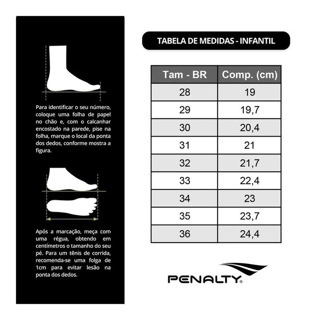 Descubra o que é jogar com muito estilo usando a Chuteira Society Penalty Bravo Y-3.0 Infantil! Feita especialmente para os pequenos atletas, essa chuteira é tudo o que você precisa para se tornar um craque no futebol society. Feita em material resistente com seu forro de tecido acolchoado garantindo maior conforto a cada jogada. Sua palmilha é confeccionada em EVA, e de fácil remoção , facilitando na higienização. Com um visual moderno e uma construção top de linha, ela te dá o suporte e o conforto perfeitos para mandar bem em diversas jogadas. Com a Penalty ao seu lado, você vai dominar o jogo com mais facilidade. Adquira já a sua ! Nome: Chuteira Society Penalty Garra Y-3.0 Infantil Gênero: Unissex Tipo: Society Indicado para: Futebol/Society/Dia a Dia Material: Material Resistente Trava: Micro travas Cabedal: Resistente levemente texturizado Entressola: Camada em EVA Solado: Emborrachado Tecnologias: Hiperflex e Non-Marking: Definição da Tecnologia: Hiperflex: canaletas posicionadas estrategicamente para auxiliar na flexão e movimentação dos pés durante as arrancadas e mudanças de direção. / Non-Marking: Composto de Borracha que não deixa marcas e proporciona excelente tração em todas as superfícies indoor. Garantia: Produto Original com garantia contra defeitos de fabricação em até 90 dias após o recebimento da mercadoria Origem: Nacional Marca: Penaltyref: M14FYC
