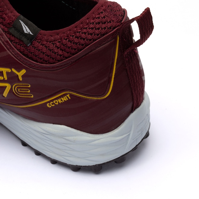 O cabedal é sintético e texturizado para uma melhor sensação no toque, lingueta flexível e integrada, além de duas tecnologias que ajudam na performance:
