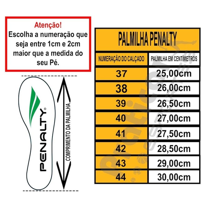 Atenção! Escolha a numeração que seja entre 1cm e 2cm maior que a medida do seu pé.