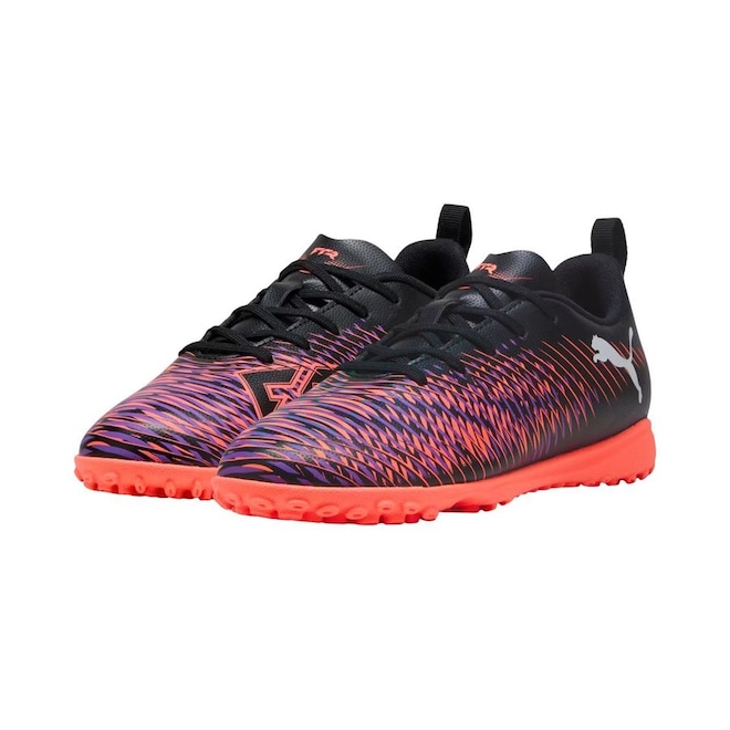 Nome: Chuteira Juvenil Puma Society Future 8 Play Gênero: Unissex Indicado para: Society Cabedal: Sintético, feito com pelo menos 30% de materiais recicladosForro: Têxtil Lingueta: Fina e macia Palmilha: Fixa Solado: Sola de borracha multitrava de baixo perfil adequada para superfícies duras e grama artificialTerreno: TT: Adequada para uso em superfícies naturais duras e grama artificialFechamento: Cadarço Marca: Puma Código do Artigo: 108396-01ref: M16L9Y