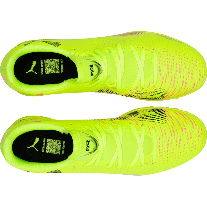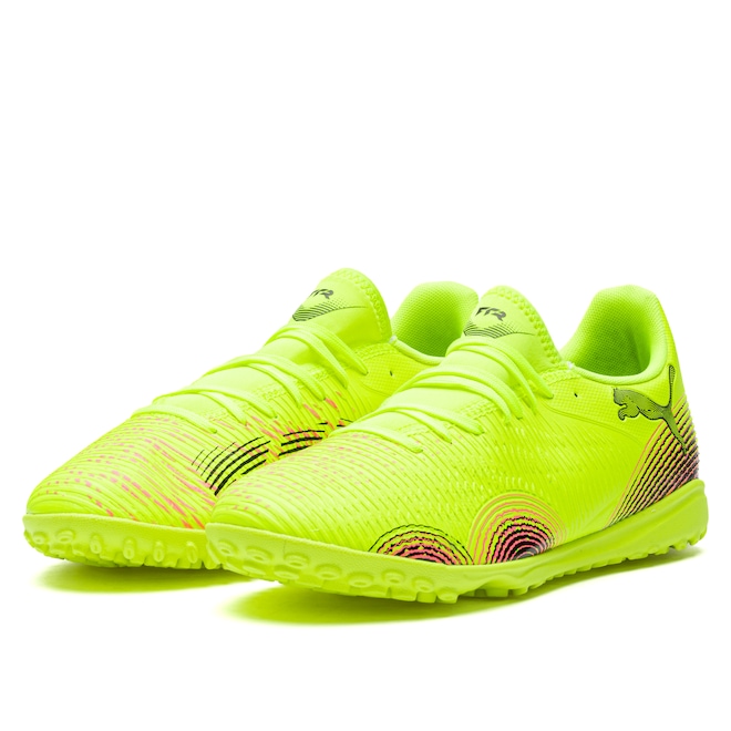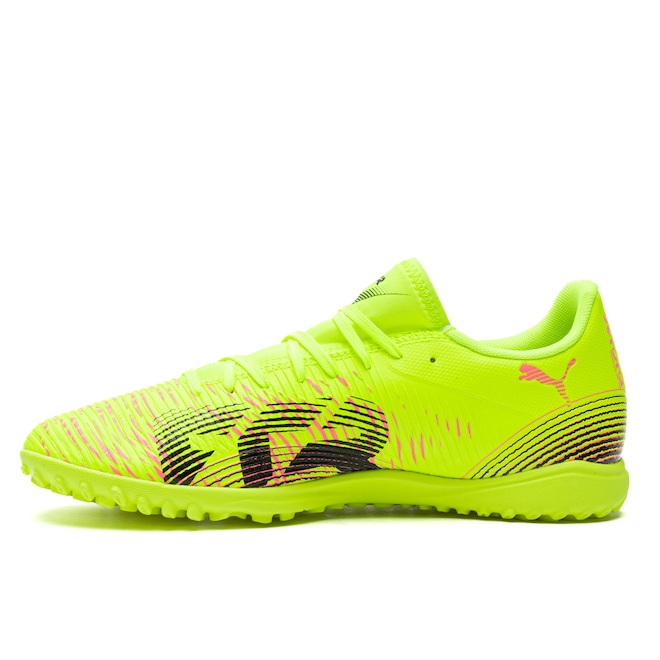 A Puma Future 8 Play TT apresenta um design moderno e funcional, ideal para jogadores que buscam controle e ajuste seguro.