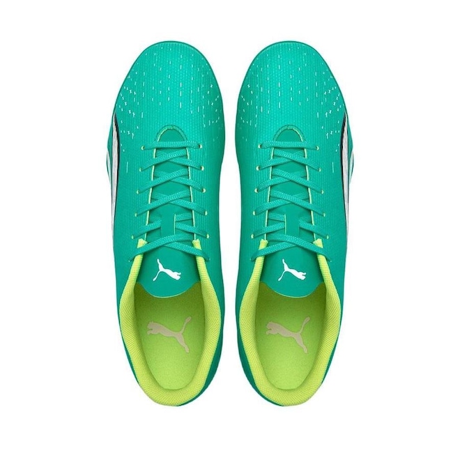A chuteira Puma conta com forro têxtil e reforço acolchoado no calcanhar que garante maior proteção.