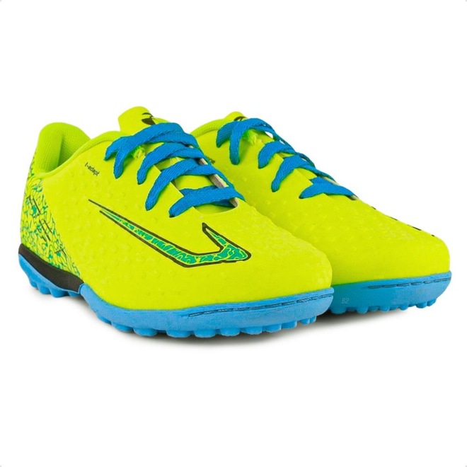 Solado em borracha é leve e flexível, proporcionando excelente tração em quadras society. Palmilha oferece amortecimento e conforto, reduzindo o impacto e proporcionando uma sensação agradável durante o jogo.