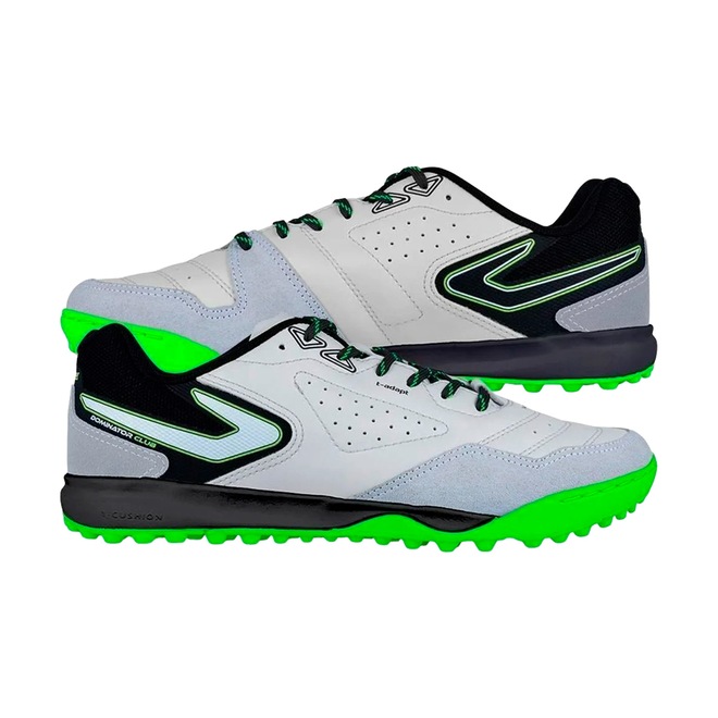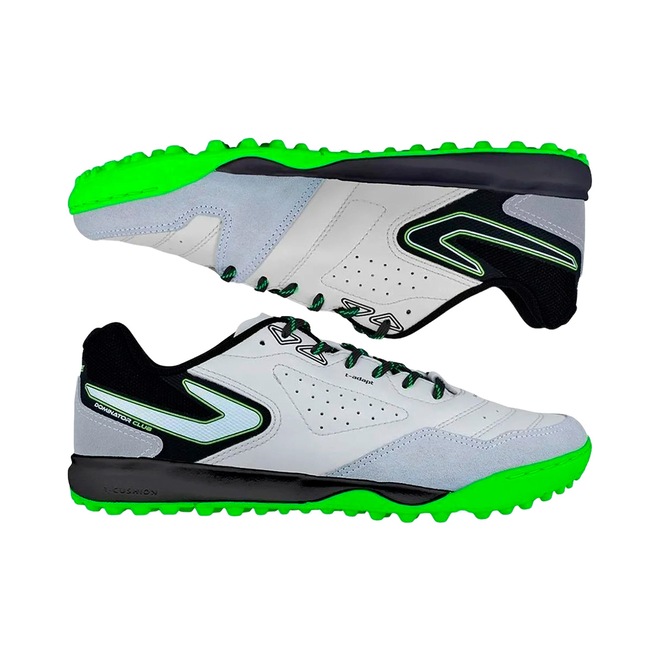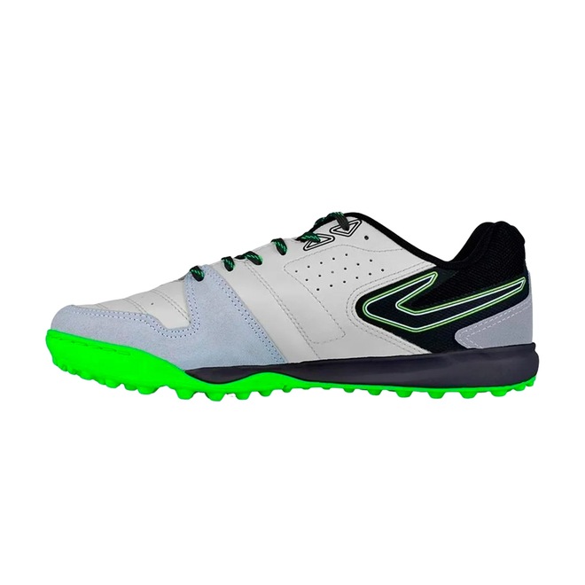 Domine o jogo com a Chuteira Society Topper Dominator Pro V! Projetada para proporcionar máxima performance em campos de society, esta chuteira da Topper apresenta um solado emborrachado com pontos de giro que otimizam os movimentos rápidos. O cabedal em material sintético oferece resistência e durabilidade, enquanto a gáspea em couro com aplique fusionado entretela proporciona um ajuste preciso. A entressola de borracha e EVA T-Cushion proporciona amortecimento eficaz e absorção de impactos, mantendo você confortável durante toda a partida. O solado T-Flow inclui entradas de ar que promovem a ventilação, reduzindo a temperatura interna durante o jogo. Com fechamento em cadarço e puxadores personalizados, esta chuteira oferece um ajuste seguro e facilitado. Seu design unissex, moderno e arrojado, proporciona segurança e conforto para dominar a bola e realizar chutes, passes e dribles com confiança.