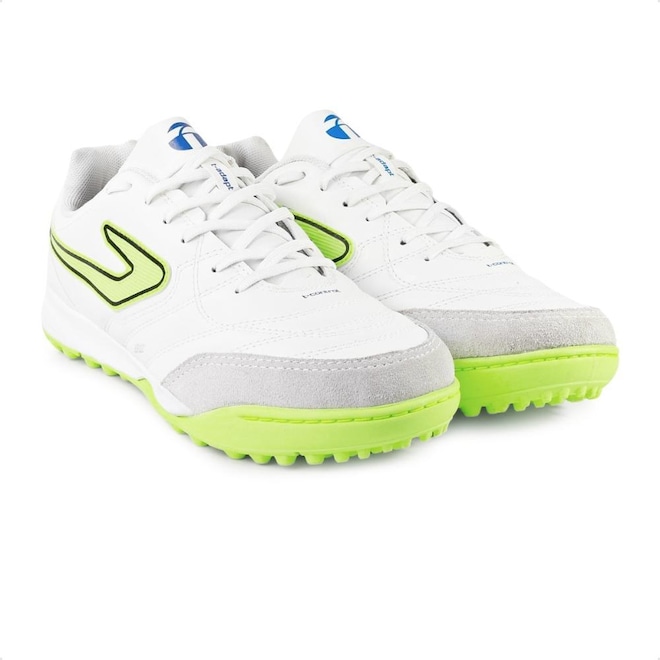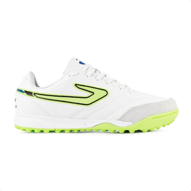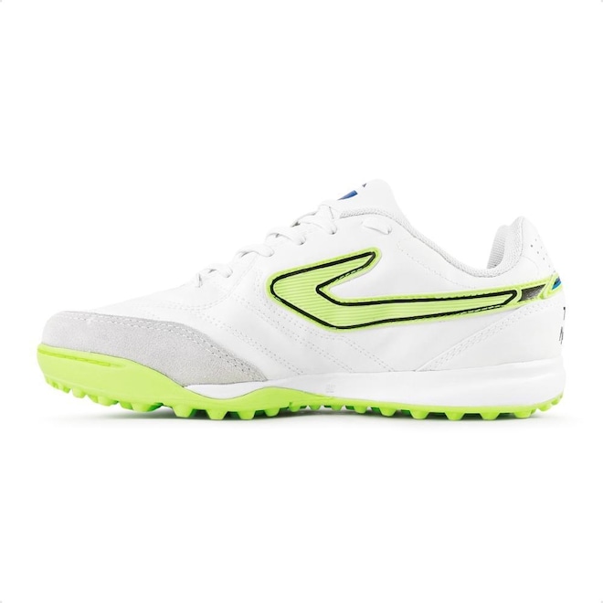 O logo Topper vem costurado nas laterais, com texturas que aumentam o controle de bola.