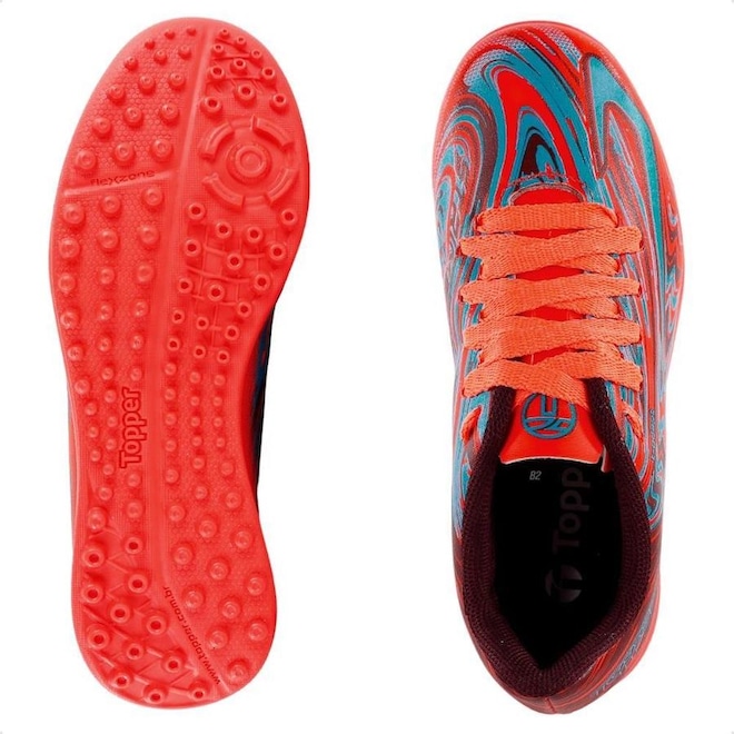 Ideal para jogadores que procuram controle e força, essa chuteira society Topper apresenta fecho de cadarço, cabedal sintético texturizado e solado flexível que auxilia na estabilidade.