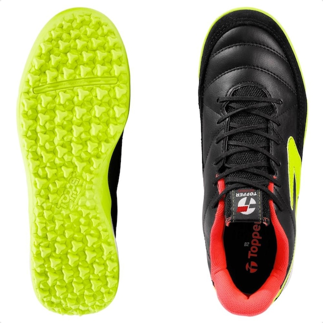 essa chuteira society Topper é confeccionada em materiais de alta qualidade que oferecem conforto e segurança durante as partidas.