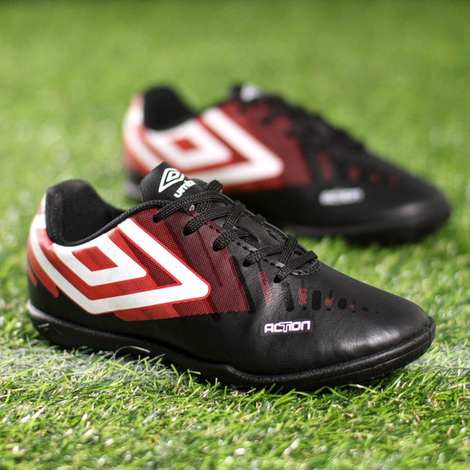 Segurança e conforto para os primeiros passos no futebol! Chuteira Umbro Society Action Jr Preto Vermelho e Branco - Juvenil: Ficha Técnica: Cabedal: Sintético Forro: Poliéster Palmilha: 90% EVA, 10% Poliéster Sola: Composto por blenda de 90% PVC e 10% TPU, que oferece aderência ao solo e durabilidade Indicação: Futebol Society; Jogadores infantis e juvenis; nível iniciante Cor: Preto, vermelho e branco Detalhes: Artes gráficas em efeito degradê, Diamante Umbro em destaque e assinatura do modelo na parte frontal Nada pior do que escorregar ou sentir desconforto ao correr na quadra. Para jovens jogadores, uma chuteira mal ajustada pode atrapalhar o desenvolvimento e a confiança. A Chuteira Umbro Society Action Jr foi projetada para evitar esses problemas! Por que você deveria apostar? Com um solado em PVC e TPU que oferece máxima aderência ao solo, ela garante movimentações ágeis e seguras. O cabedal sintético facilita a limpeza, mantendo a chuteira sempre impecável, enquanto a palmilha em EVA macia reduz o impacto, proporcionando mais conforto a cada passo. Mais segurança para quem está dando os primeiros passos no futebol! Conteúdo da embalagem: 1 par de Chuteira Umbro Society Action Jr Preto Vermelho e Branco - Juvenil