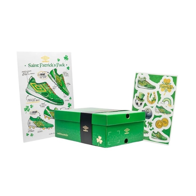 Nome: Chuteira Umbro Society Ada Master Class Gênero: Masculino Indicado para: Society Detalhes: Costuras de reforço e linhas de flexão nos pontos de maior contato com a bolaCaracterísticas: Caixa especial e adesivos inspirados em ícones da tradição do St. Patrick’s DayCabedal: Em couro nobre Napa Premier na parte frontal e no talãoEntressola: Em EVA com composto BUMP, proporcionando amortecimento e alto retorno de energiaLingueta: Fina e macia Palmilha: Palmilha interna em EVA conformado e forradoSolado: 60% Borracha, 40% Eva Terreno: Gramado sintético Fechamento: Cadarço, acompanha 2 cadarços reserva Marca: Umbro Código do Artigo: U03FB00355-529