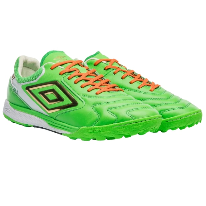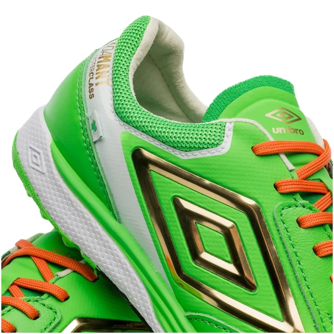 Inspirada na cultura irlandesa, a Chuteira Society Umbro Ada Master Class Pro apresenta um vibrante tom de verde, complementado por grafismos que fazem referência ao trevo de 5 folhas. Esta combinação não só traz um visual atraente, mas também simboliza sorte e sucesso dentro de campo. Se você busca não apenas desempenho, mas também uma estética diferenciada, esta chuteira é a escolha ideal.Conforto e Performance em Cada Jogo: Desenvolvida para jogadores profissionais, a chuteira oferece uma combinação perfeita de sensibilidade e controle direcional. Seu cabedal é confeccionado em couro nobre tipo Napa Premier, garantindo durabilidade e um toque suave na bola. As costuras de reforço e as linhas de flexão são estrategicamente posicionadas para proporcionar maior conforto e adaptabilidade durante o jogo.