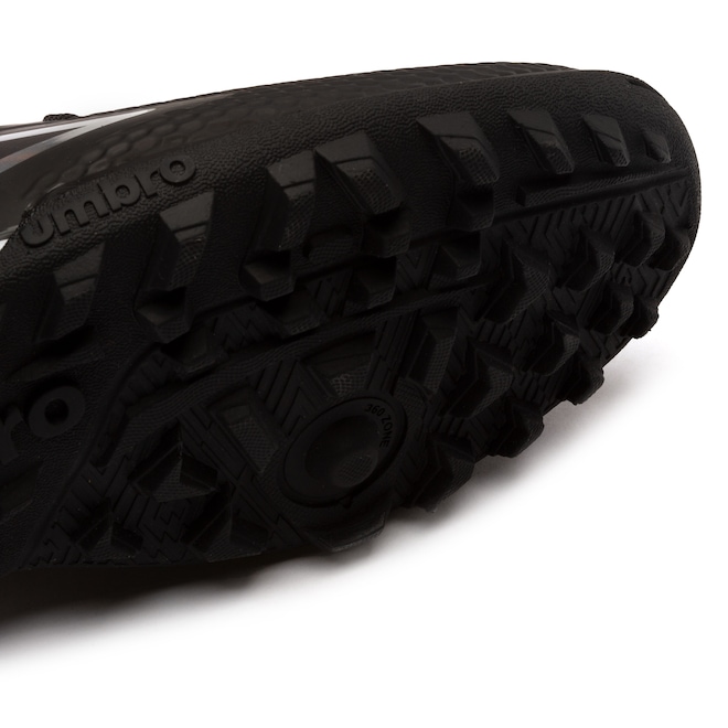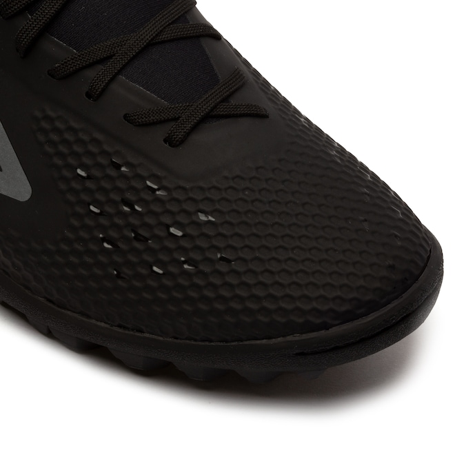 Seu cabedal sintético e o solado emborrachado garantem durabilidade e excelente tração em campo.