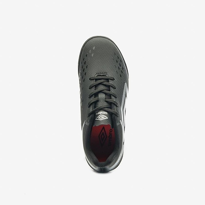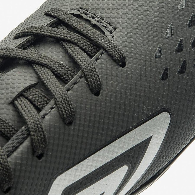 A Chuteira Society Adamant Top Speed Jr segue o mesmo design moderno do modelo adulto profissional. Seu cabedal texturizado auxilia o controle e domínio da bola, ideal para os mini craques treinarem seus dribles e passes. Cabedal construído em material laminado texturizado com forro em tecido de poliéster. Possui artes gráficas personalizadas em serigrafia, lingueta com passador e logo Umbro, assinatura Adamant aplicada na parte posterior externa e palmilha interna em EVA forrado. O solado de society HG é composto por PVC.