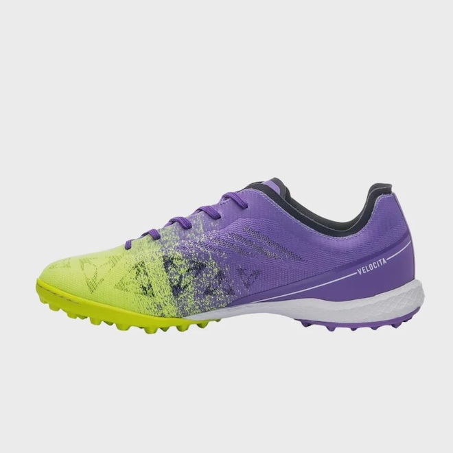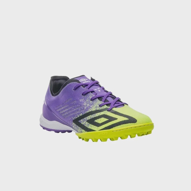 Chuteira Umbro Society Velocita Decimo Premier Masculina Verde Limão e Roxo - 38 -