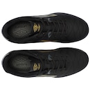 A chuteira society apresenta forro interno em têxtil com reforço acolchoado para maior proteção.