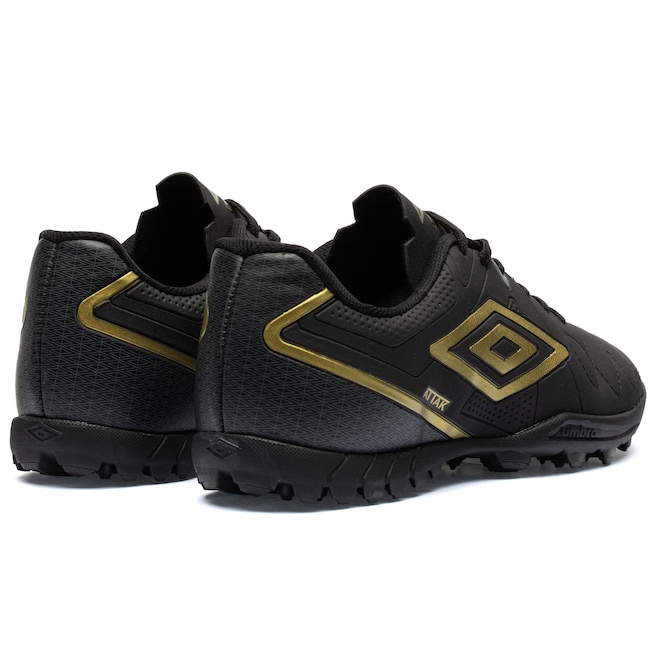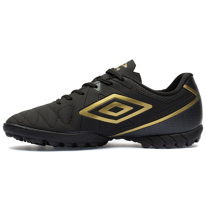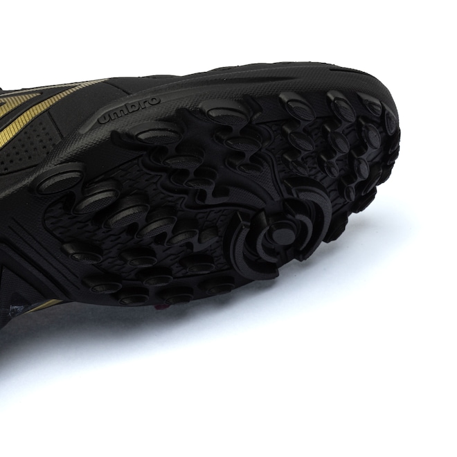 Essa chuteira Umbro possui cabedal (parte superior do calçado) em material resistente, proporcionando suporte e apoio dentro das quatro linhas.