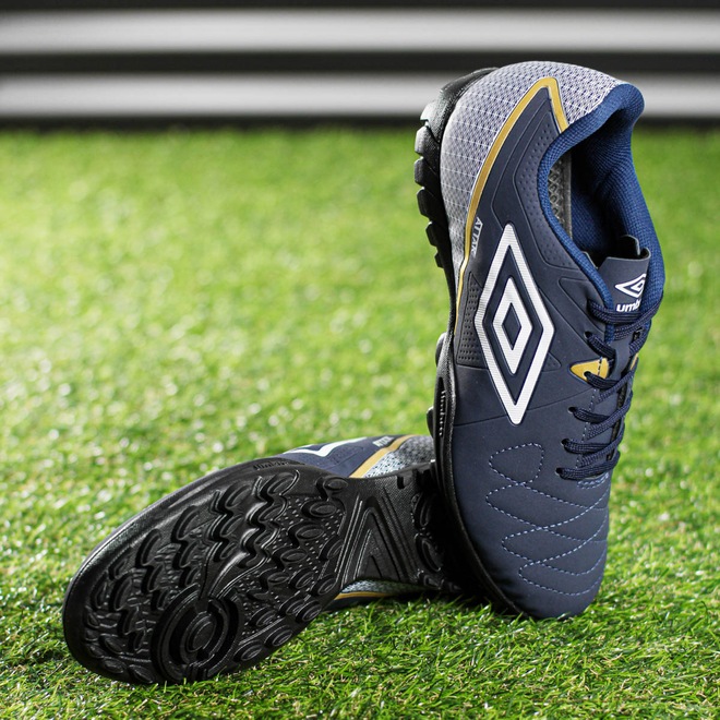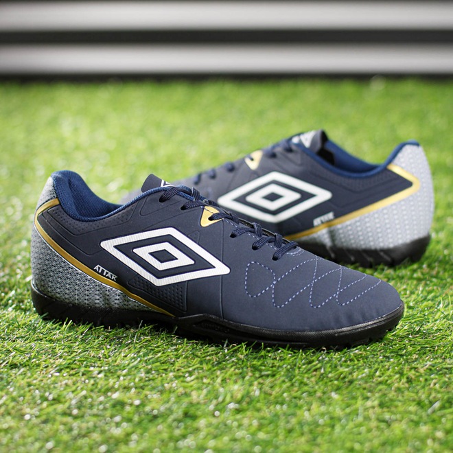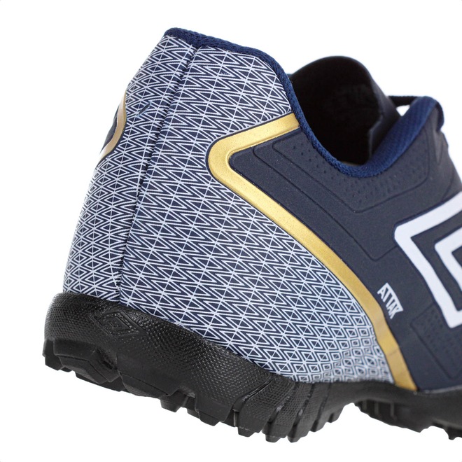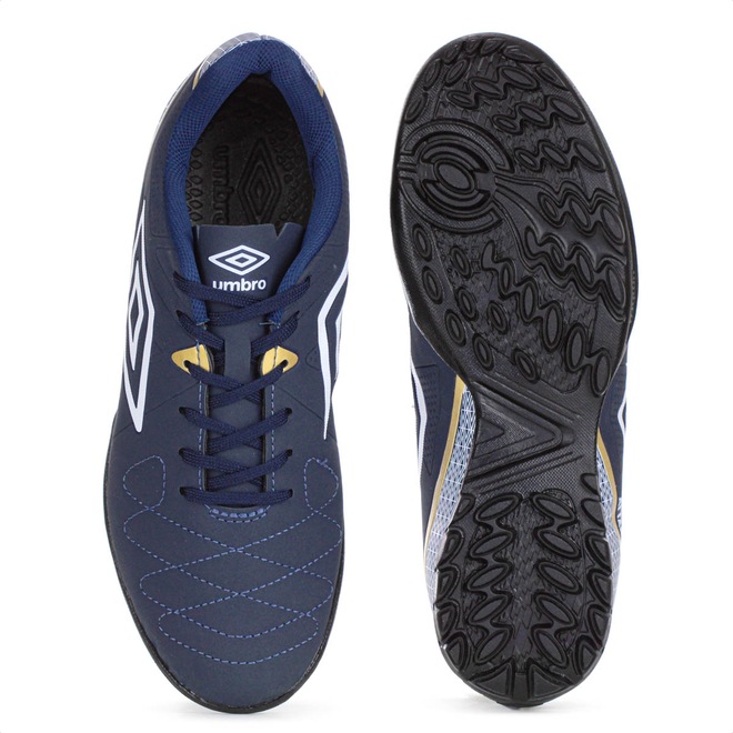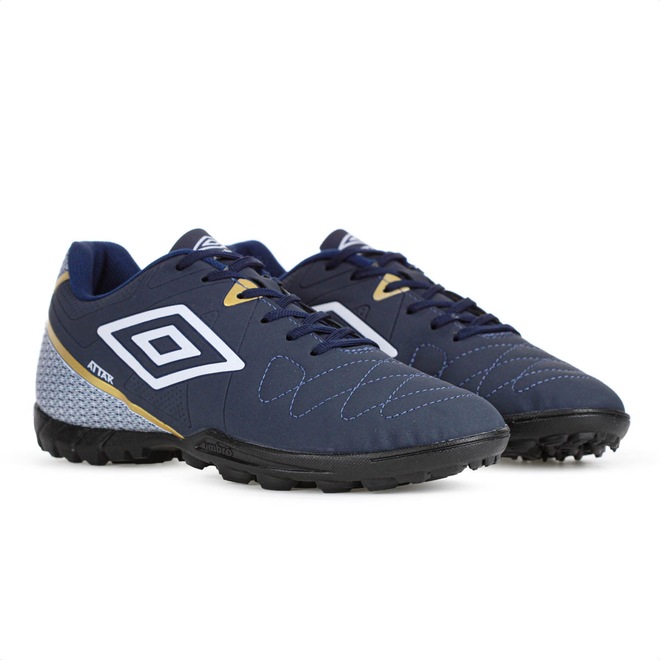 Modernidade e Desempenho em Cada Jogo! Chuteira Umbro Society Attak Eternal Azul Marinho Branco e Dourado - Masculino Ficha Técnica: Marca: Umbro Gênero: Masculino Indicação: Futebol Society Cabedal: Sintético com aplique de alta-frequência e costura programada na parte frontal Forro: Poliéster Palmilha: EVA confortável Sola: 100% Borracha Solado: HG (society), construído em borracha Lingueta: Fina e flexível Fechamento: Cadarço Cor: Azul marinho com detalhes em branco e dourado Detalhes: Logotipo da marca nas laterais e estampa do símbolo Umbro na parte traseira Descubra a combinação perfeita entre tradição e inovação com a Chuteira Umbro Society Attak Eternal! Este modelo clássico da Umbro foi renovado para atender às demandas do jogo moderno sem perder sua essência. Por que investir? Com um cabedal laminado e detalhes em alta-frequência, ela entrega resistência, estilo e ajuste ideal. O solado HG em borracha garante tração e estabilidade nas quadras de society, enquanto a palmilha em EVA oferece conforto durante toda a partida. Conteúdo da embalagem: 1 par de Chuteira Umbro Society Attak Eternal Azul Marinho Branco e Dourado - Masculino